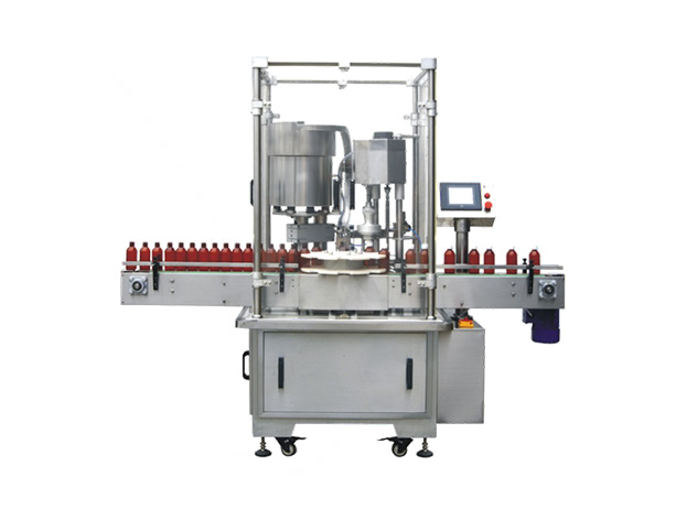 自動封蓋機為星盤式送瓶,由機械手取蓋后水平送至封蓋頭,垂直于瓶口完成封蓋,可避免傳統勾蓋方式造成的瓶蓋傾斜,降低失誤率。適用于旋蓋、軋蓋和壓蓋等封蓋形式。