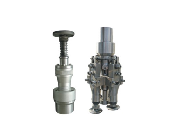 由星盤間歇式將瓶子帶至封蓋工位進行封蓋。附一組離合器,當有卡瓶或過載時,自動分離并停機,降低破損率,保證設備正常進行