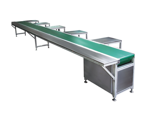 該設(shè)備適用于化妝品廠、制藥廠、食品飲料廠等包裝車間的產(chǎn)品手工包裝或自動(dòng)輸送;整機(jī)支架為鋁合金型材組裝而成;臺(tái)面為不銹鋼材料;皮帶采用輕型PVC或PU皮帶;線速度采用無級(jí)調(diào)速,整機(jī)外形美觀;式樣新型;傳遞平穩(wěn);操作方便。