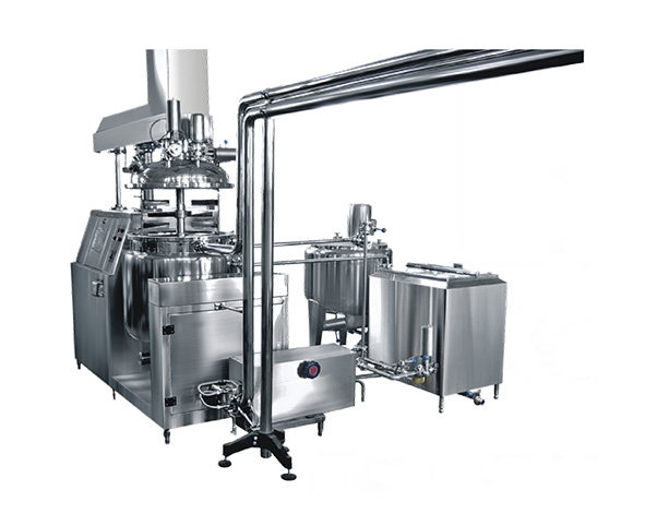 本機組由基質溶解罐、真空乳化攪拌罐、熱水罐、凸輪轉子泵、真空泵、熱水衛生泵、液壓系統、自動供料系統、電器控制系統等部分組成。